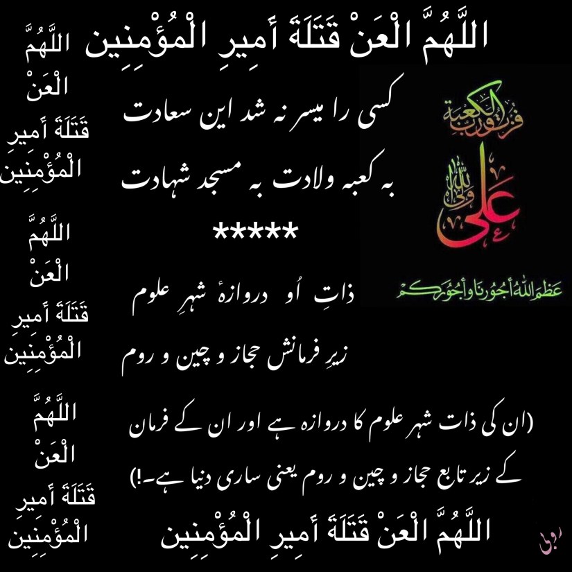اے اللہ! امیر المومنین[علی بن ابیطالب علیہ السلام] کے قاتلوں پر تو لعن کر. تو اپنی رحمت کے کنارے سے انکو دور رکھ اورعذاب میں همیشہ کے لئے شامل کر…