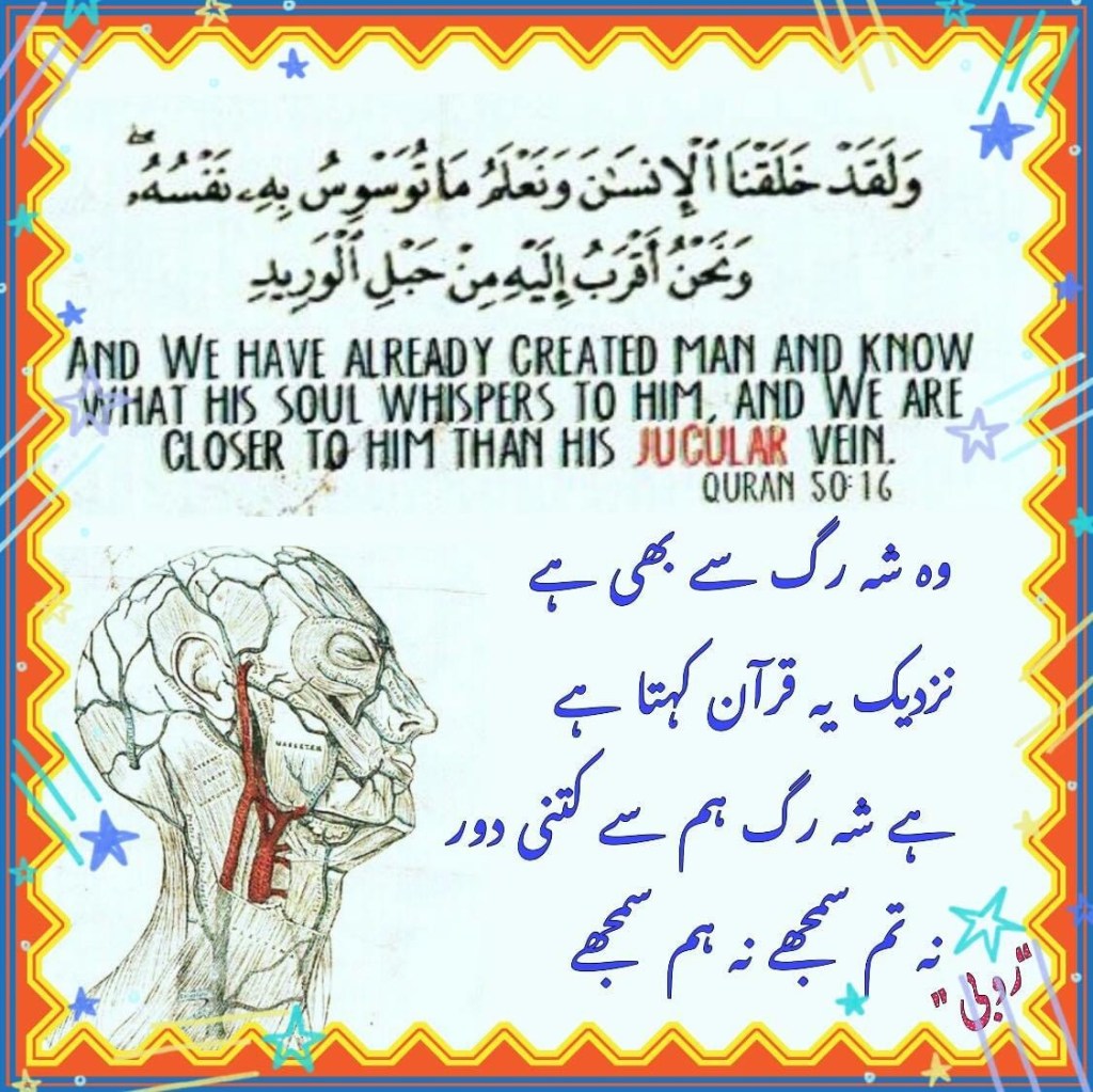 ترجمہ : ہم اس کی شہ رگ سے زیادہ اس کے قریب ہیں۔