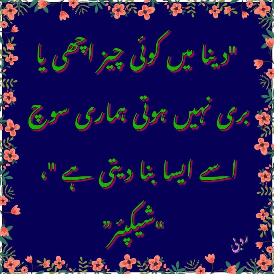 "دینا میں کوئی چیز اچھی یا بری نہیں ہوتی