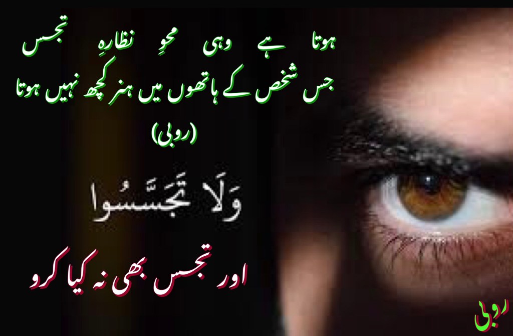 (آجکل ایک مسئلہ بہت سننے میں آرہا ہے لوگ ایک دوسرے کی ٹوہ لینے کے لیے کبھی فون اور دوسرے آلات کی مدد لے رہے ہوتے ہیں اور کبھی فیس بک کی پرسنل وال پہ جاکے ۔ اور بہت فخر سے چار افراد میں اس کا تذکرہ کرتے ہیں اس بارے میں ایک کوشش )