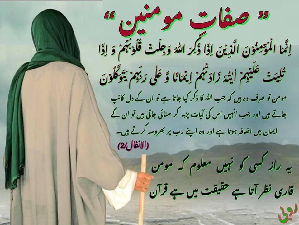 اِنَّمَا الۡمُؤۡمِنُوۡنَ الَّذِیۡنَ اِذَا ذُکِرَ اللّٰہُ وَجِلَتۡ قُلُوۡبُہُمۡ وَ اِذَا تُلِیَتۡ عَلَیۡہِمۡ اٰیٰتُہٗ زَادَتۡہُمۡ اِیۡمَانًا وَّ عَلٰی رَبِّہِمۡ یَتَوَکَّلُوۡنَ