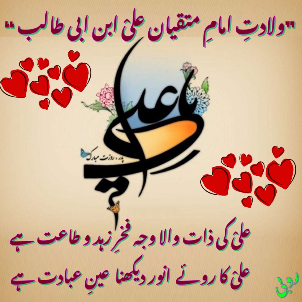 امام علی ابن ابی طالب علیہ السلام بن عبد المطلب بن ھاشم بن عبد مناف 13 رجب ،30 عام الفیل ، یعنی ہجرت نبوی سے 23 سال پہلے پیدا ہوئے